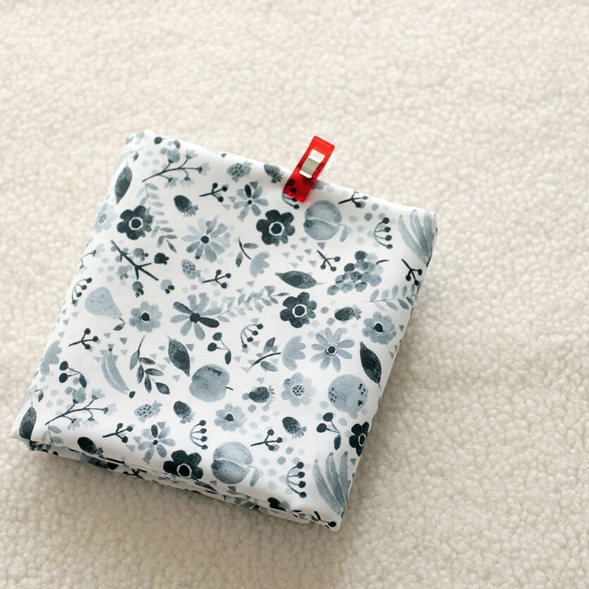 落ち着いたモノクロカラーで描かれたお花と果物のパターンが、大人可愛くも洗練された表情を見せてくれる一枚です。